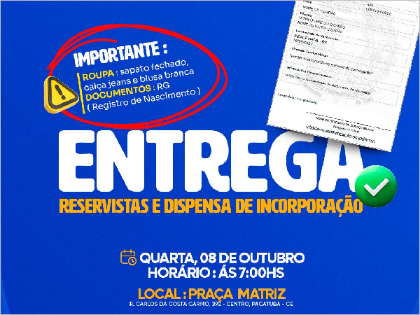 Endereço: RUA CORONEL JOÃO CARLOS, Nº S/N - CENTRO - CEP: 61.801-225